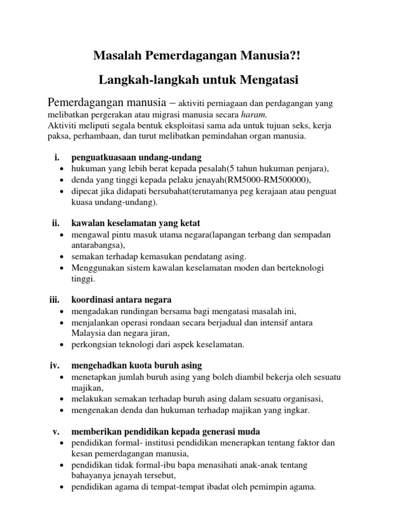 Langkah Mengatasi Pemerdagangan Manusia Docx Antara Langkah Untuk Mengatasi Masalah Pemerdagangan Manusia Termasuk Berkerjasama Dengan Negara Luar Course Hero